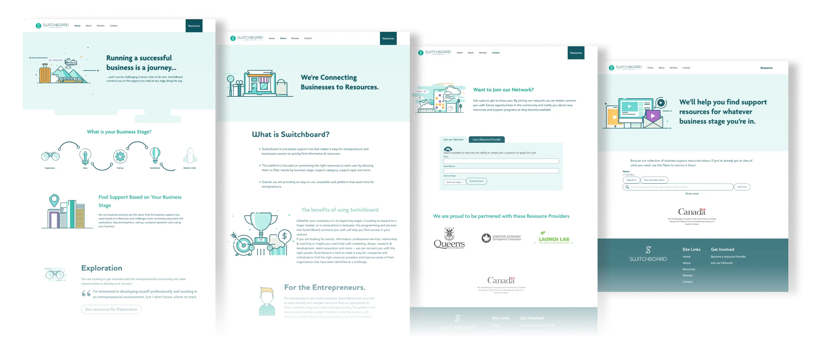 Switchboard is a local business support hub that aims to connect people with resources to grow their business at various stages of development. They came to SPARK with a pre–existing logo and brand concept that they wanted to extend into an online space. I designed an accessible, user-friendly and mobile-compatible website to help them start connecting with their audience.